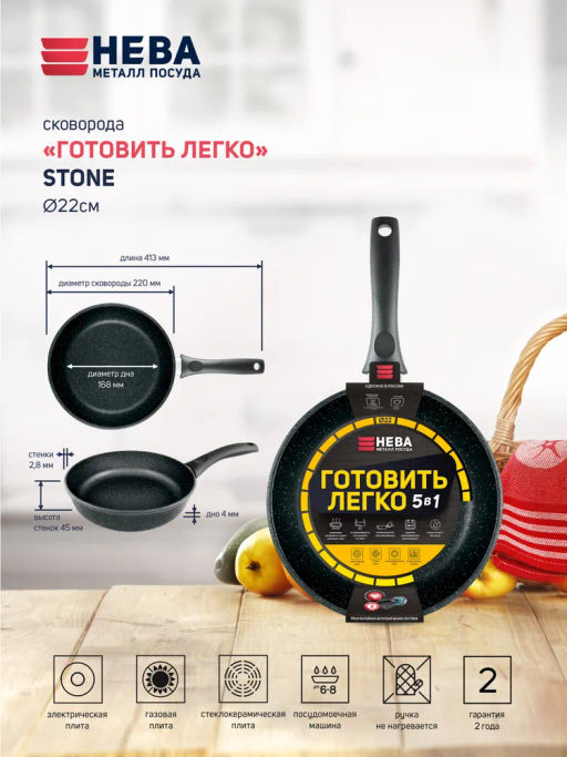 Сковорода "Готовить легко" Stone (несъемная ручка), 22 см