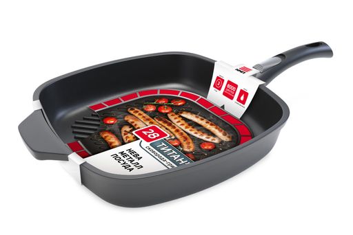 Квадратная сковорода-гриль, Титан съемная ручка, 28 см