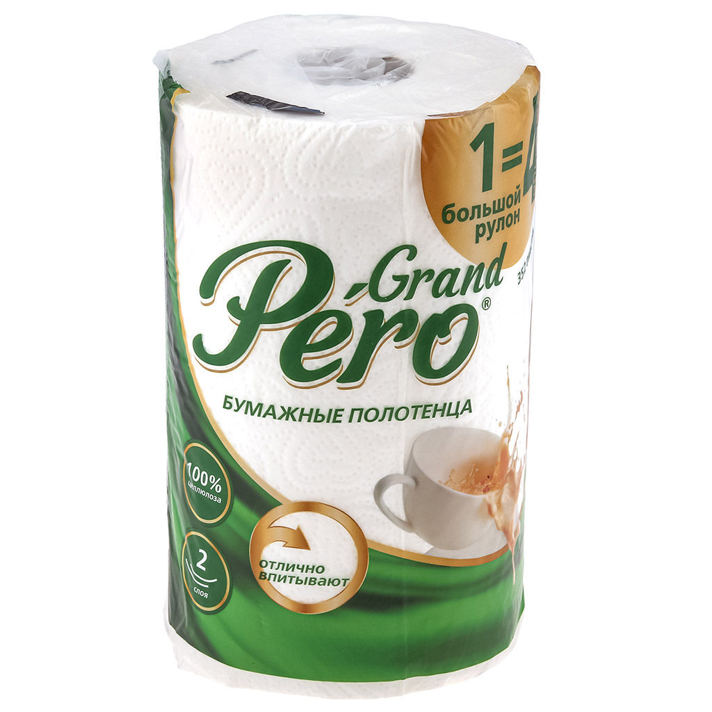 Полотенце бумажное 2-х слойное "Grand Pero" 1 рулон, 44м, размер листа 23х12,5см, белый (Россия)