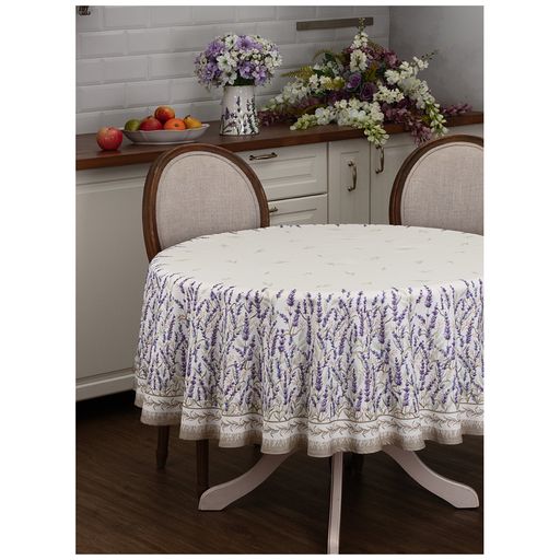СКАТЕРТЬ КРУГЛАЯ "ДУША ПРОВАНСА" 190СМ ,БЕЛЫЙ, 100
