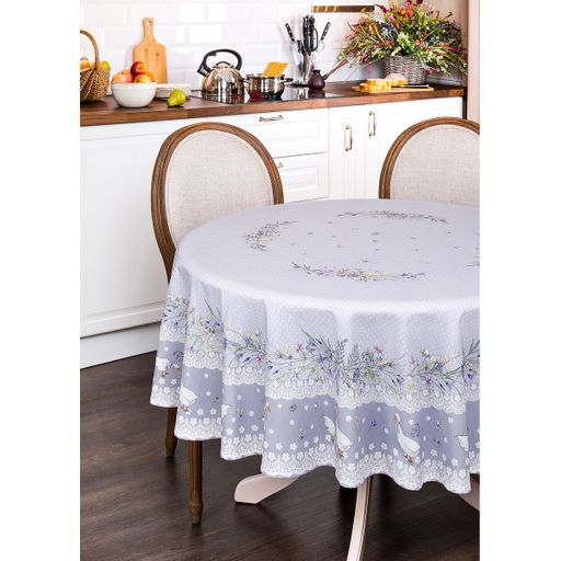СКАТЕРТЬ КРУГЛАЯ "ГУСИ ЛЕГАРД" ДИАМЕТР=180 СМ., СЕРЫЙ, 100