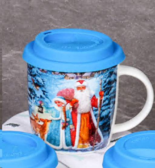 Кружка новогодняя с крышкой силиконовой,ложка /400 мл/ CE895/3 /уп 72/в коробке/ ПРОМО АКЦИЯ