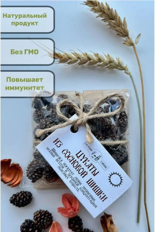 Цукаты из сосновой шишки на деревяной подложке, 70гр