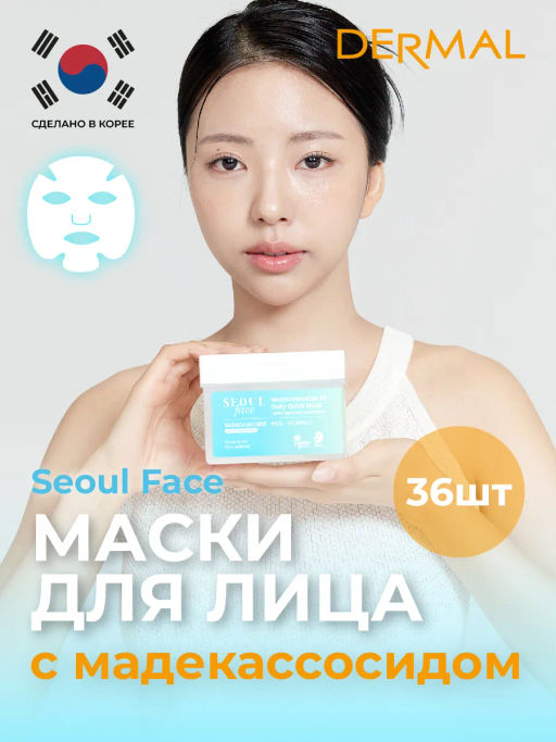 DERMAL Seoul Face Набор масок для лица с мадекассосидом 36шт