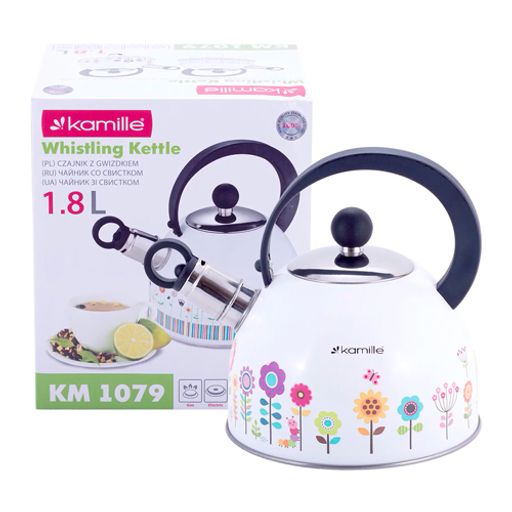Чайник 1.8л из нержавеющей стали со свистком и нейлоновой ручкой (1079) /KAMILLE/