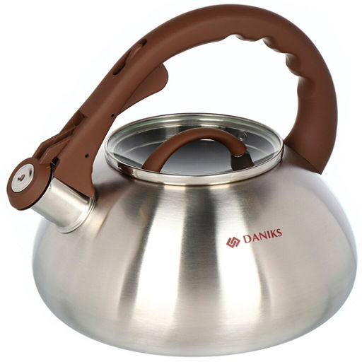 Чайник нерж. сталь, 3 л, со свист., матовый, Daniks, Emerald, индукция, коричневый, DSC-8804 (451812