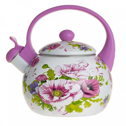 EM-25101/14 Чайник эмалированный со свистком 2,5 л. "Нежные маки" (6)