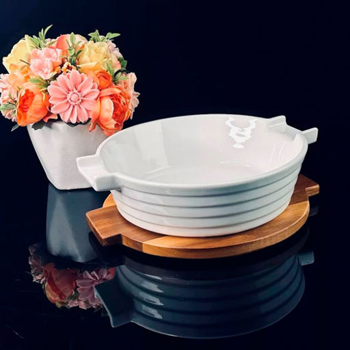 Круглое блюдо для запекания 24см с дерев.крышкой/подставкой в под.уп.(х12)Фарфор арт.142-118