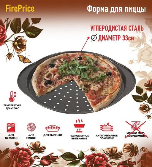 Форма для пиццы PIZZA P-02, диам 33 см (с ручками) арт.008572