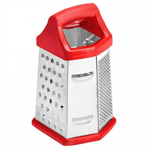 BE-092 Терка 6 граней, 20см с пластиковой ручкой (нерж.сталь), краный (48)