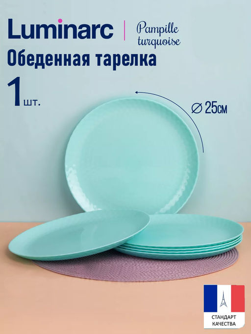 Тарелка обеденная ПАМПИЛЬ ТЮРКУАЗ бирюзовый 25см арт.Q4649 /Люминарк/