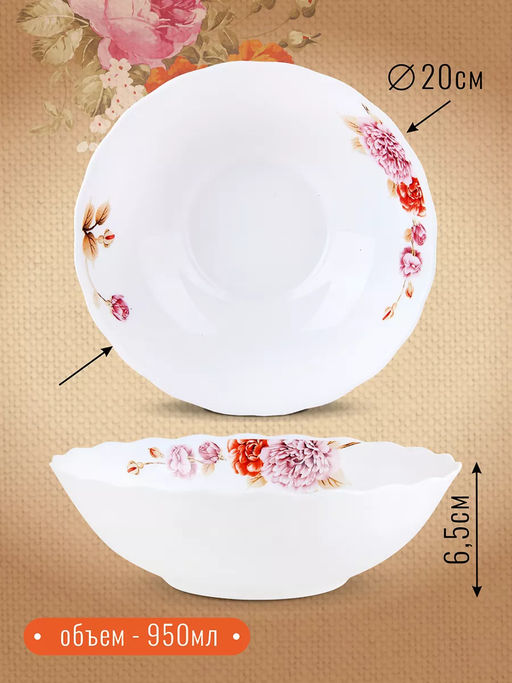 Салатник 20см/950мл, Пион HW80-Decal No.60 /Коралл/