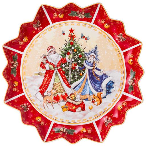 Блюдо "Дед мороз и снегурочка" 38 см красное 85-1735 #НовыйГод
