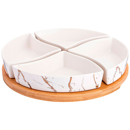 Менажница 4 секции на дерев. подставке "Fantasy" 26,7 см 42-358