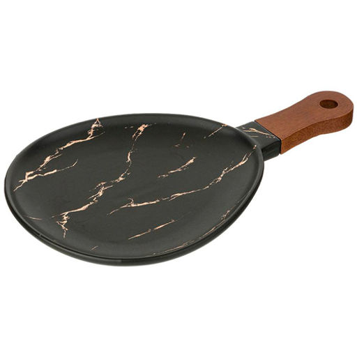 Блюдо для сервировки с деревянной ручкой "Золотой мрамор" цвет: black 30,7*18,4*2,4 см 412-120