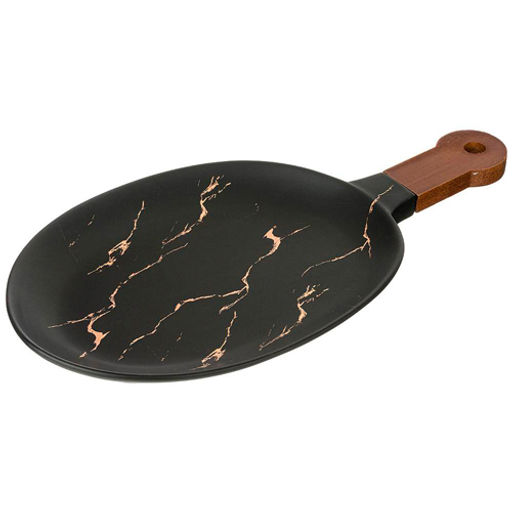 Блюдо для сервировки с деревянной ручкой "Золотой мрамор" цвет: black 37,5*19*2,4 см 412-124