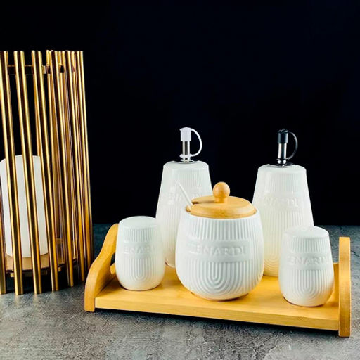Набор для специй Lenardi Bamboo 5 пр.с сахар. и бут. для масла/уксуса на подс. 140-065