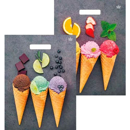 Пакет с вырубной ручкой 31х40+6 60мкм Тико глянец (Мороженое (двусторонний)) ВУР49794 упак/50шт.
