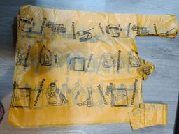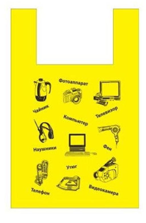 Пакет типа "майка" 36+20 х 56 15мкм "Электроника ПР" (желтый) черные Артпласт упак/50шт