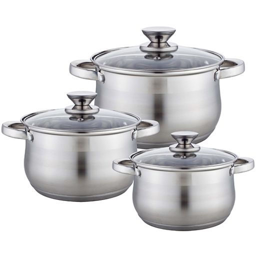 BE-614/6 Набор посуды из нерж.стали 6 пр. 2,1л, 2,9л, 3,9л со стеклянными крышками
