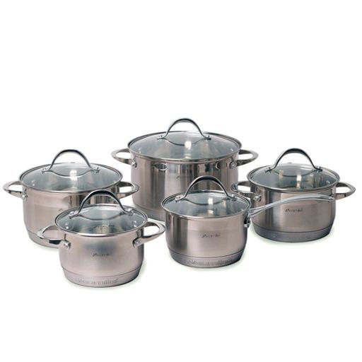 Набор посуды нерж.10 предметов (ковш 1.8л; кастрюли 1.8л, 2.3л, 3.3л, 5.8л; 7-слойное дно) 4710S /KAMILLE/