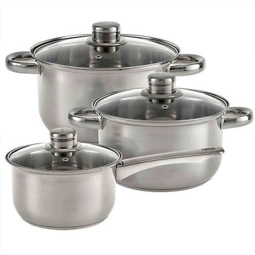 Набор посуды из нерж.стали 6 предметов 1,9л, 2,6л, 3,5л BE-631/6 со стеклян. крышками