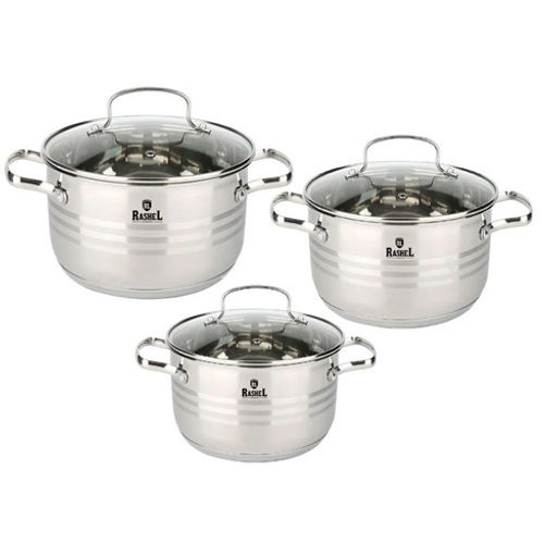 Набор кастрюль 6 пр. из нержавеющей стали со стекл. кр. (3,6л, 4,7л, 6л) (R-346т) /Rashel/