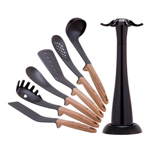 Набор кухонных принадлежностей с подставкой 7 предметов нейлоновые с ручкой под дерево (5235) /KAMILLE/