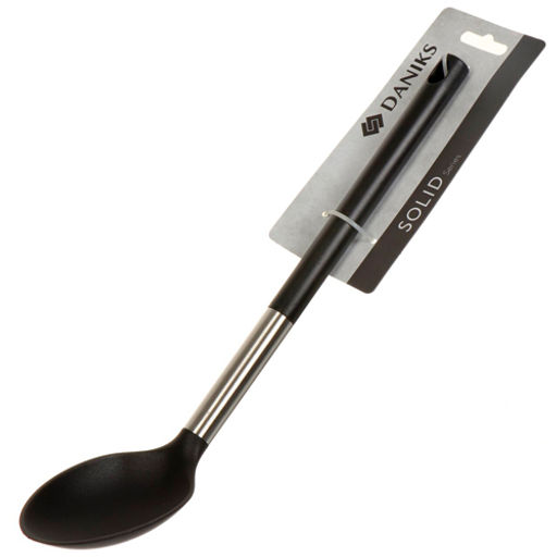 Ложка поварская нейлон, пластиковая ручка, навеска, черная, Daniks, Солид, JA20200420-6 (388548)