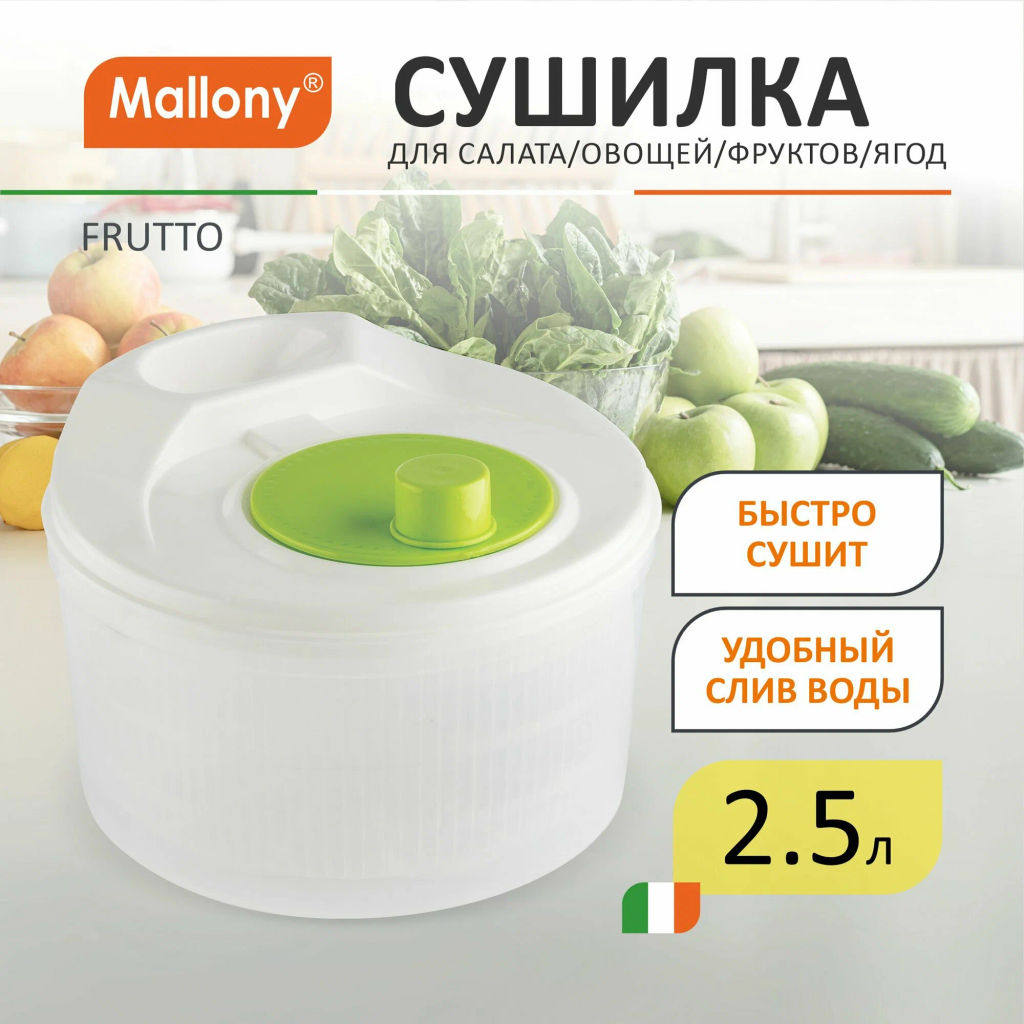 Сушилка для салата/овощей/фруктов/ягод FRUTTO 22.2*22.2*15.5см арт.105012 /Mallony/