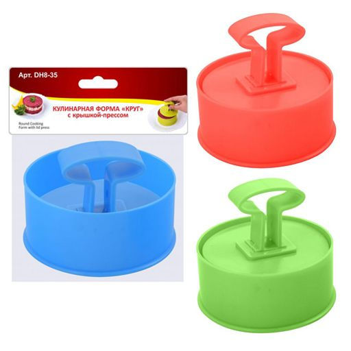 Кулинарная форма "Круг" с крышкой-прессом, d9,5см, h=4,5см 3цв. NEW, 8.35 /МультиДом/