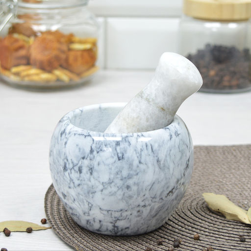 Ступка с пестиком 8х10см серая, мрамор 5029