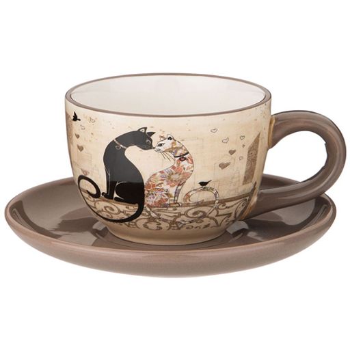 Чайный набор на 1 персону "Парижские коты" 15*15 см. высота=7 см. / 220 мл. 358-1747