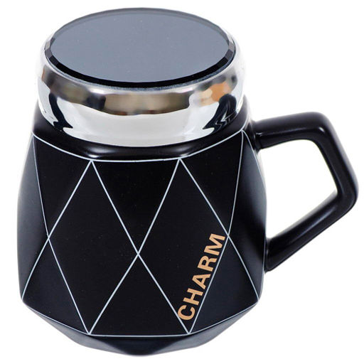 Кружка керамика, 450 мл, Простые линии, с крышкой, Y4-3790, в ассортименте (361677)