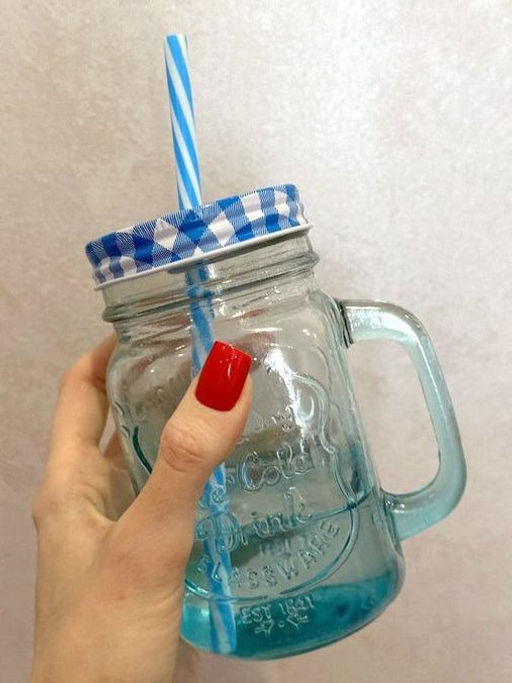 Кружка стекло, 450 мл, с крыш, с трубочкой, SDFG0114-1 (298236)