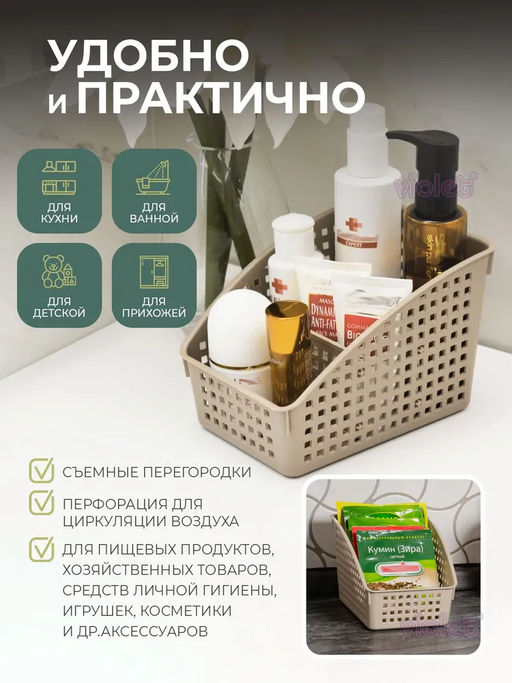 Органайзер "Лофт" с перегородками широкий 180х135х120мм (латте) 672020 "Виолет"