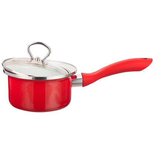 Ковш эмалированный со стеклянной крышкой с эффектом металлик серия "Deluxe" 1,1 л. 901-055