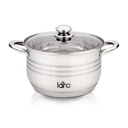 Кастрюля LARA (нерж) SONATA 20x12,5см, 3,9л, 7-cтупенчатое дно, комбо-полировка, крышка LR02-582