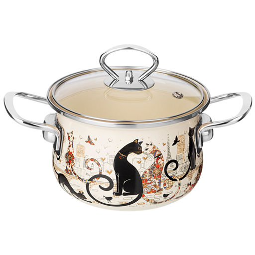 Кастрюля эмалированная со стеклянной крышкой серия "Парижские коты", 1.5 л, 16*10 см 915-150