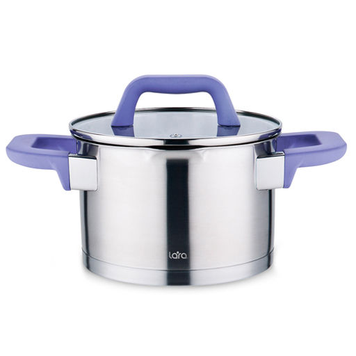 LR02-255 Кастрюля LARA (нерж) ЛАВАНДА 6,4л, 24см, индукц. дно, soft touch, стекл. крышка, слив.3/6мм