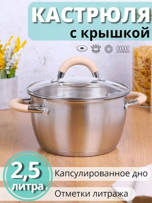 Кастрюля Fortuna 2.5 л, нерж сталь с крышкой, матовый корпус, ручки с силиконом арт.007218 /Mallony/