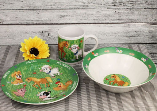 Набор "Домашние животные" 3пред (тарелка 19см, миска 18см, кружка 240мл) в под. уп. арт. MFK04005 /МФК/