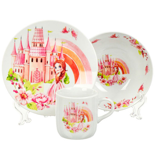 Набор посуды керамика, 3 шт, Замок принцессы, тар. 17.5/18 см, сал. 15см, круж. 230мл, Daniks 435313
