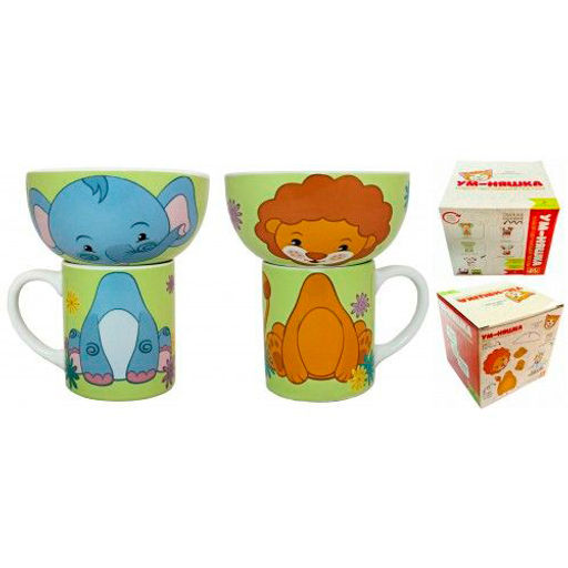Набор "Слонёнок и Львёнок" 2 пр.: кружка 200 мл, миска 300 мл в подарочной упаковке арт.MFKS2-6cl /МФК/