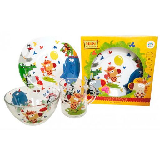 Набор "Зебра в клеточку" 3 пр.: кружка 250 мл, салатник 13 см, тарелка 19,5 см в под.уп. арт.ЗЕБН3-1 /МФК/