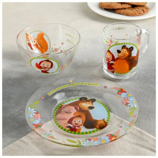 Набор "Маша и Медведь. Добрый день" 3 пр.: круж 250 мл, сал. 13 см, тар. 19,5 см в под.уп. ММН3-1 /МФК/