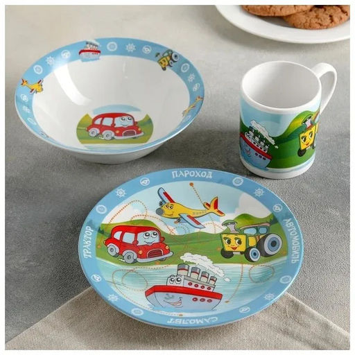 Набор "Транспорт" 3 предмета (тарелка 19 см, миска 18 см, кружка 240 мл) в под. уп. арт.MFK04001 /МФК/