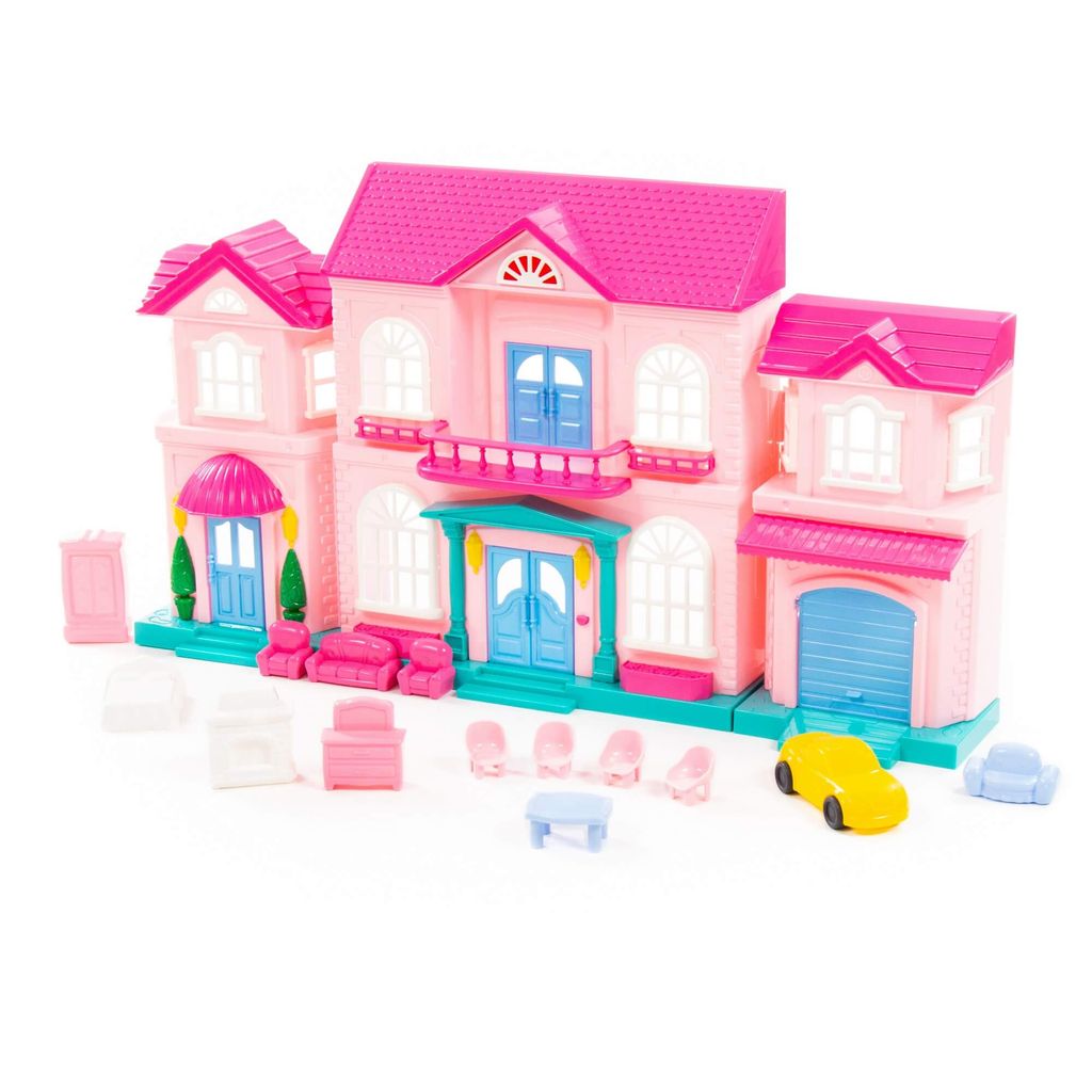 Кукольный домик "София" с набором мебели и автомобилем (14 элементов) (в пакете)