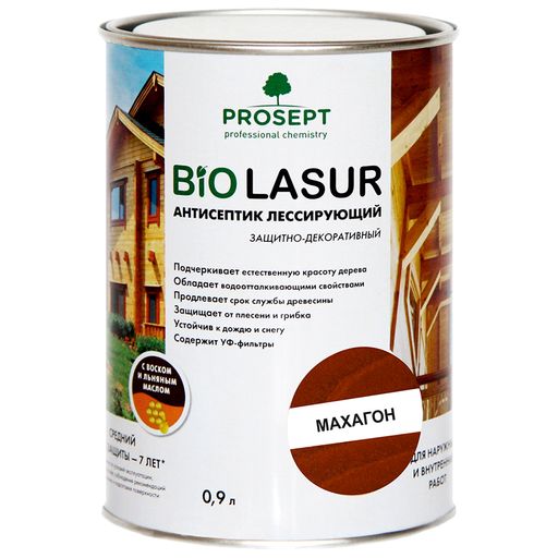 PROSEPT BIO LASUR - антисептик лессирующий защитно-декоративный; Махагон 0,9л