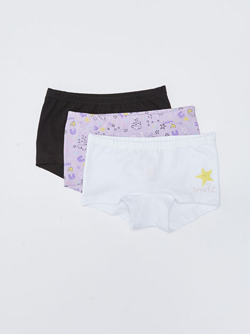 Bask?l? Pamuklu K?z ?ocuk Boxer 3l?